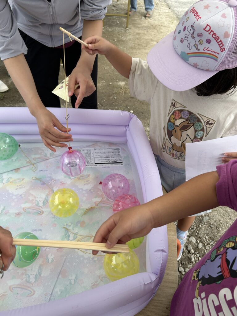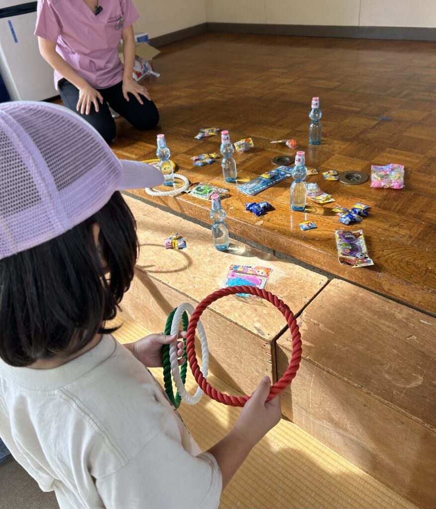 輪投げと、たくさんの縁日コーナーがあり、お土産もたくさんもらって子供達は大喜びでした★