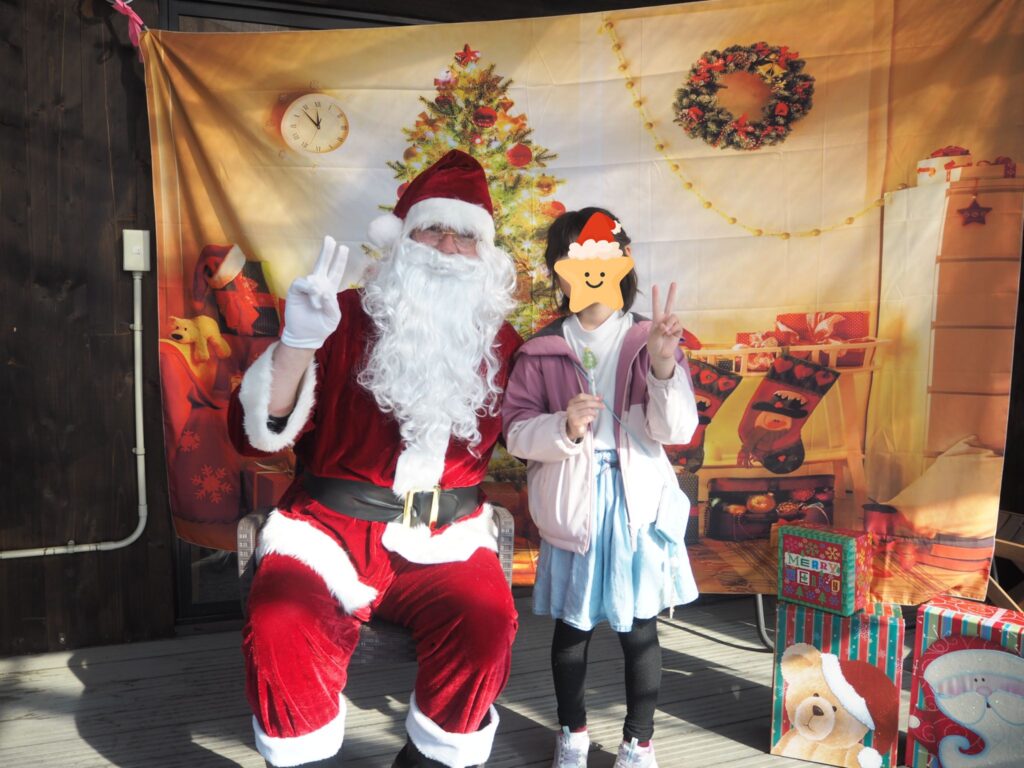 ビニールハウス内ではサンタさんとの記念撮影や、塗り絵を楽しむことができました。ビニールハウスの中はとても暖かく、冷えた体もぽかぽかに。