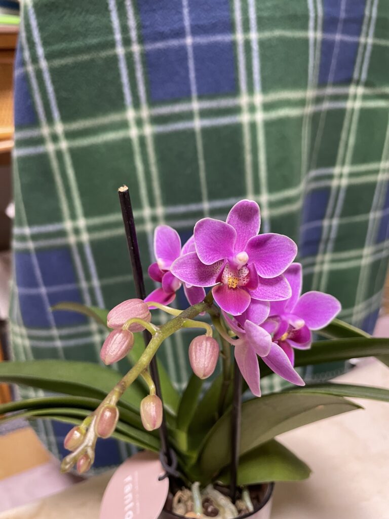 私は去年、母にミニ胡蝶蘭の鉢を贈りました。その胡蝶蘭は今年も花をつけたと、母から写真が送られてきました。
