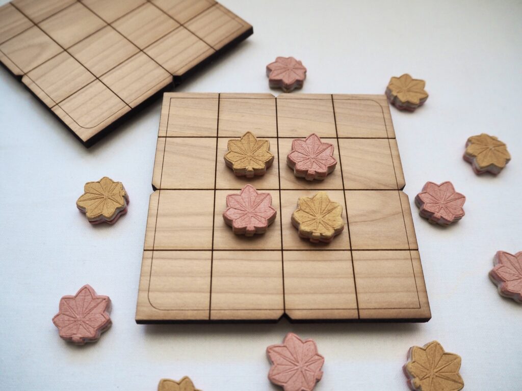 私は陶芸が好きで色々な物を作っているのですが、大好きな箕輪町のもみじに影響され、オセロの駒をもみじで作ってみました。